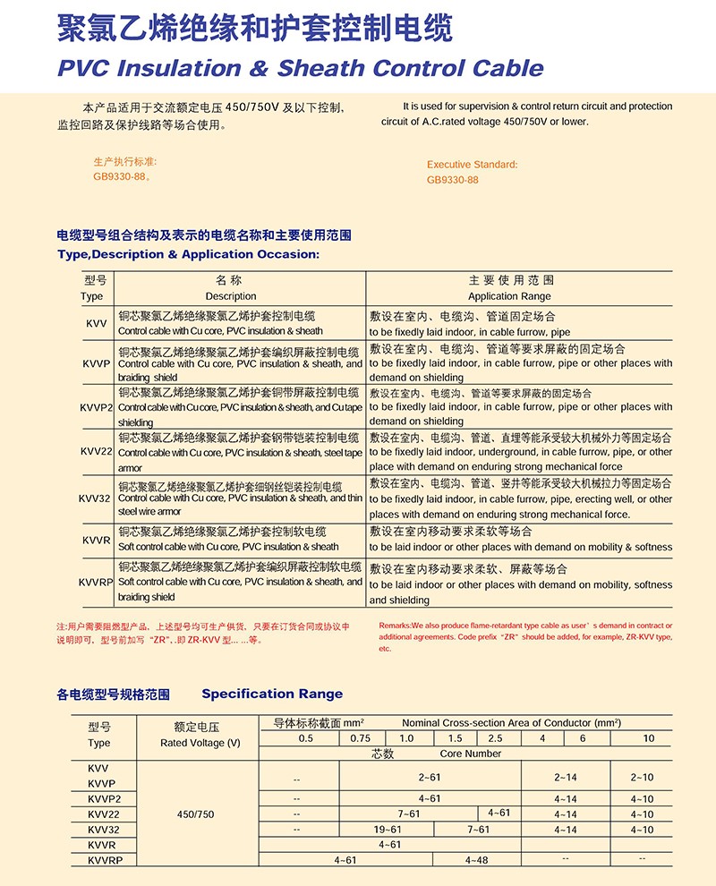 聚氯乙烯絕緣電纜和護(hù)套船用控制電纜
