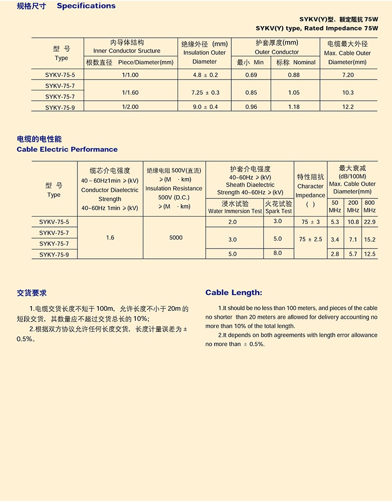電纜分配系統(tǒng)用縱孔聚乙烯絕緣同軸射頻電纜
