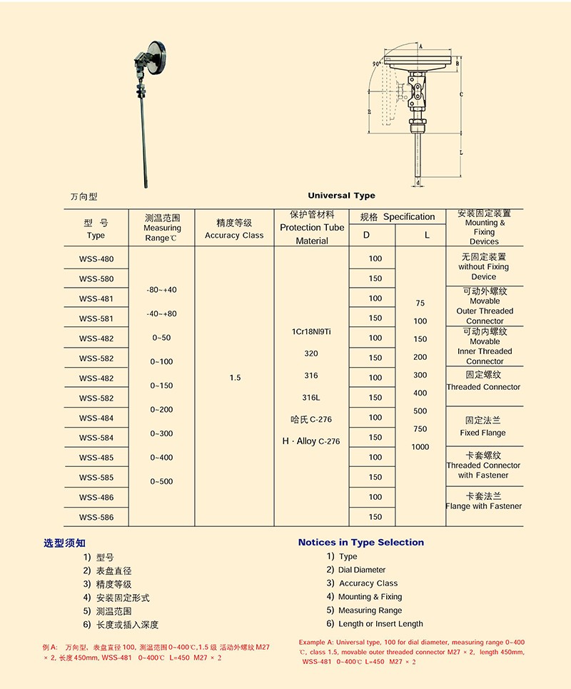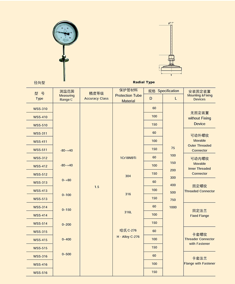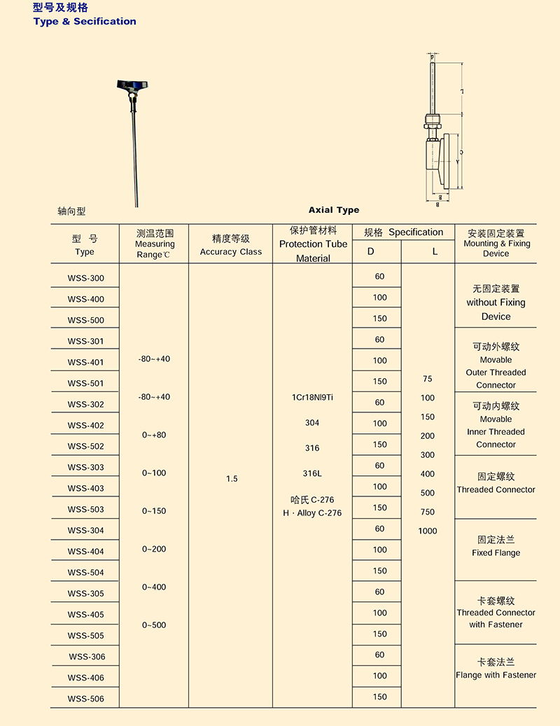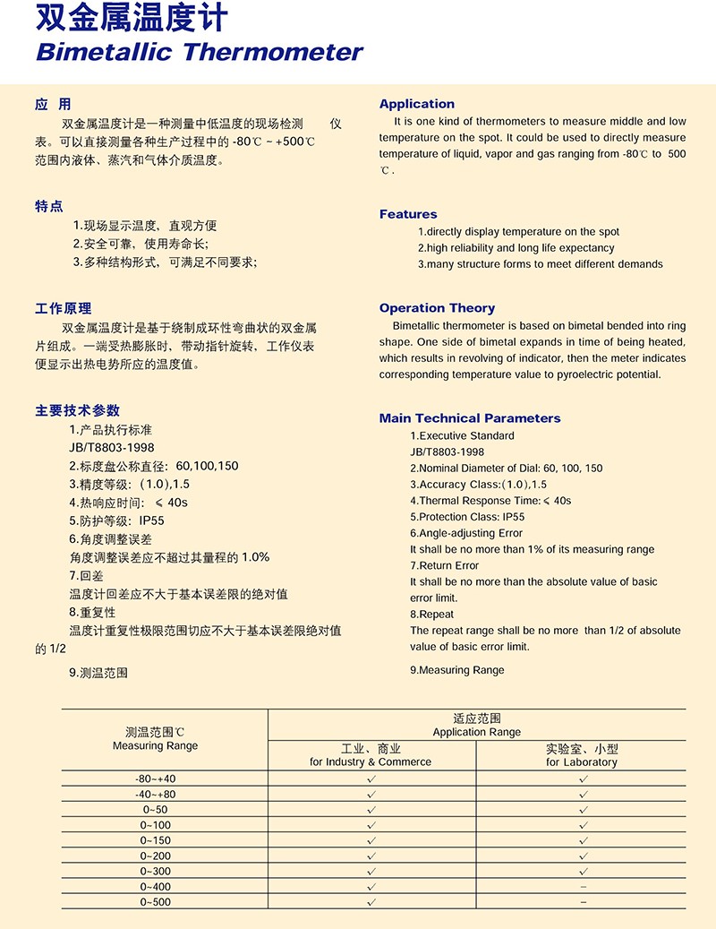 帶熱點(diǎn)偶(阻)雙金屬溫度計(jì)